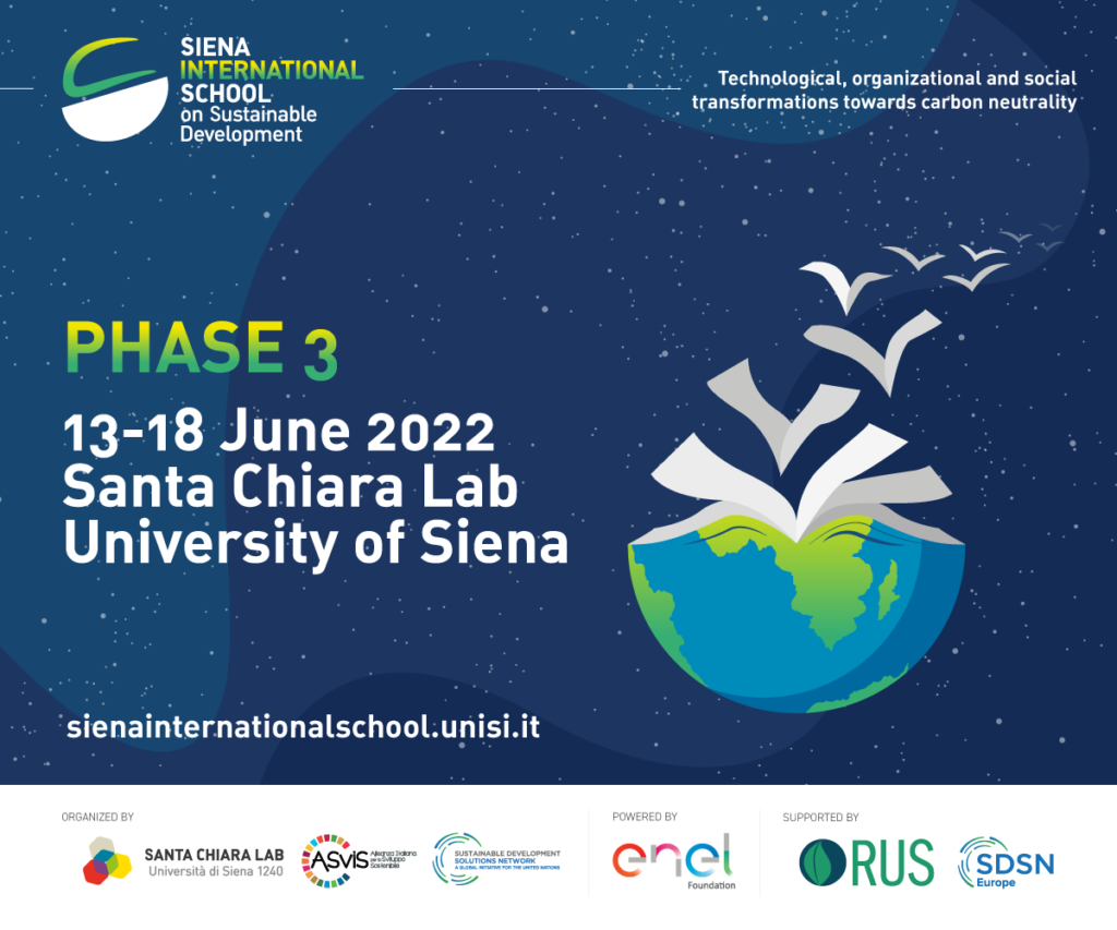 The Siena International School on Sustainable Development 2022 returns on campus on Monday, 13 June, at Santa Chiara Lab – University of Siena, higher education for skills in key areas of sustainable development, dedicated to decarbonization. Together with the international experts and teachers, including the Italian Minister Enrico Giovannini and Professor Jeffrey Sachs, economist at Columbia University, 30 participants selected for the final phase of the School will be the game changers for carbon neutrality.