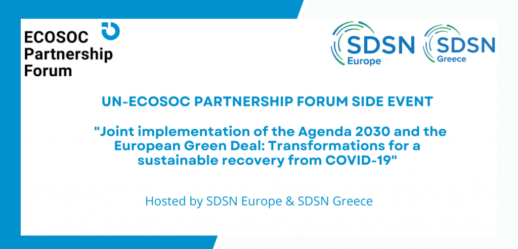 On the occasion of the 2022 UN-ECOSOC Partnership Forum, to be held on 2 February 2022, SDSN Europe and SDSN Greece co-organize a side event.